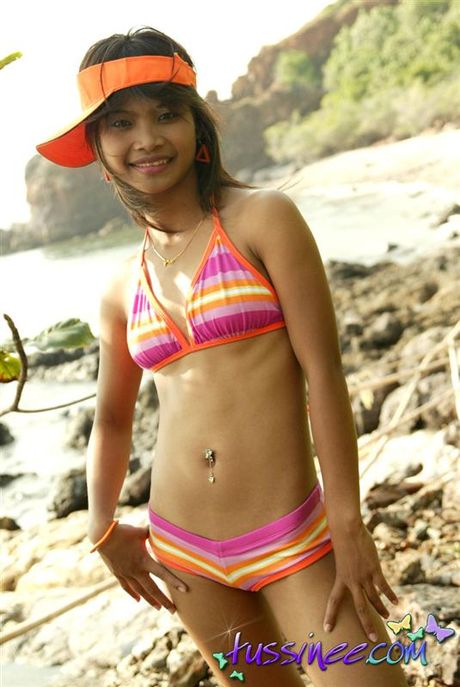 Tussinee: 18 year old Thai teen in orange bikini at the beach