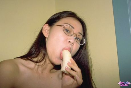 My Cute Asian: Amateur Asian girl with tiny tits toying her pussy in the kitchen