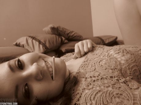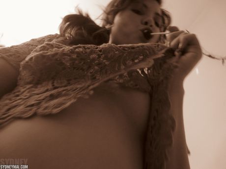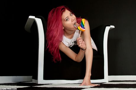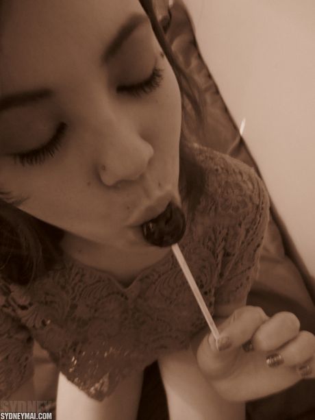 Pink Velvet Vault: Amateur Asian Sydney Mai shows her tiny tits and toys her pussy in a solo