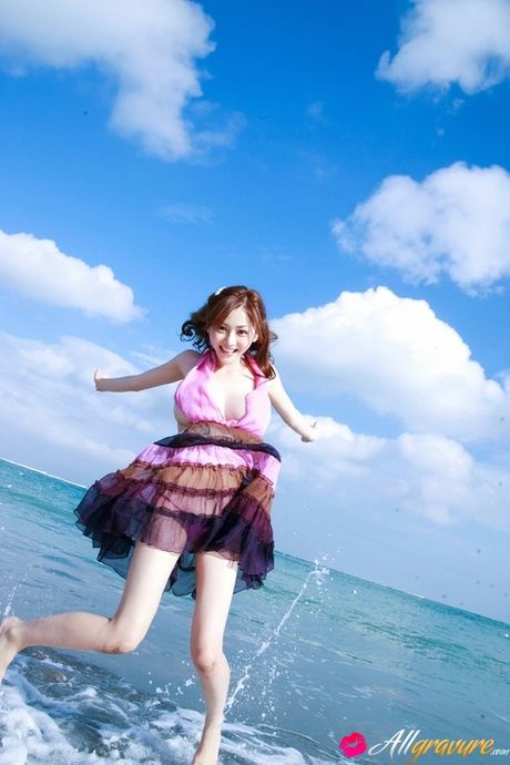 All Gravure: Anri Sugihara Asian shows big melons while playing in water