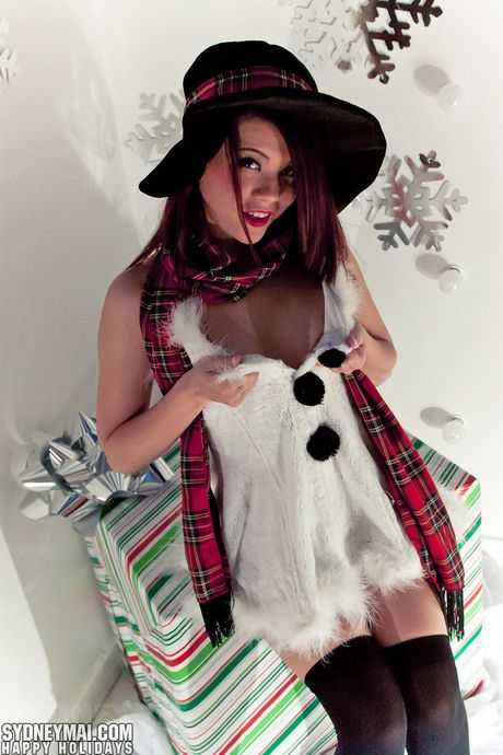 Pink Velvet Vault: Asian amateur Sydney Mai shows her big ass and tits in a Christmas solo