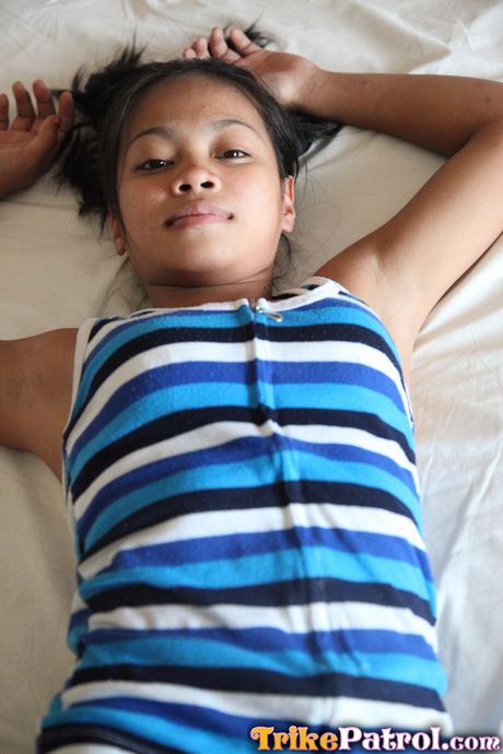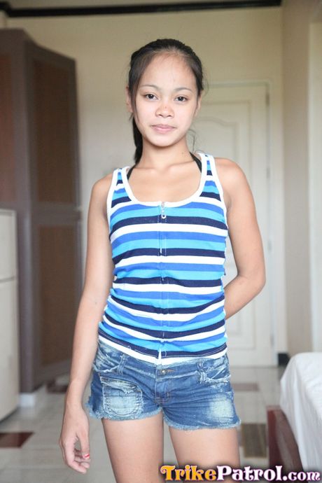 Trike Patrol: Asian amateur teen with tiny tits strips and shows her hairy cunt