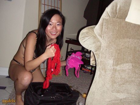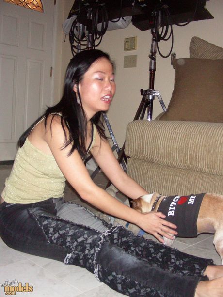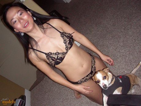Matts Models: Asian cougar Niya Yu strips to her stockings and shows her big ass and tits