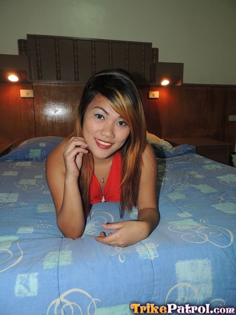 Trike Patrol: Asian teen Cindy strips and shows her tiny tits and pussy