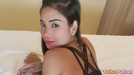 Trike Patrol: Asian teen Hazel strips off and unveils her tiny tits and hairy pussy