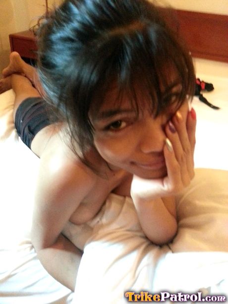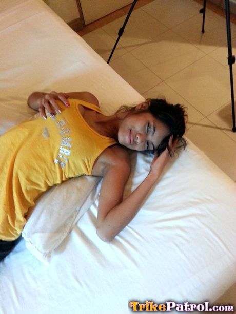 Trike Patrol: Asian teen Jennifer strips and shows her small tits and pink pussy