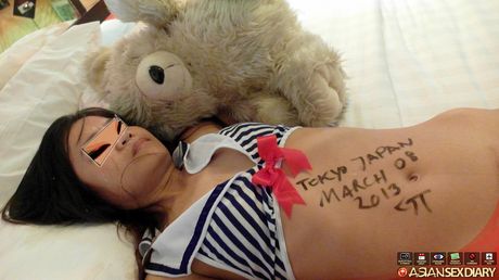Asian Sex Diary: Asian teen Maki strips and rubs her twat while masturbating in a solo