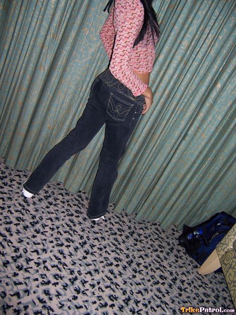 Trike Patrol: Asian teen Roseanne strips and shows her tiny tits and ass in a solo