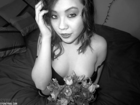 Pink Velvet Vault: Asian teen Sydney Mai strips and masturbates with a dildo in a solo