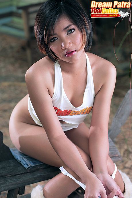 Thai Cuties: Asian teen with tiny tits Fine toying her hairy pussy with a dildo