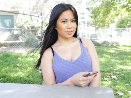 Trike Patrol: Asian teenage amateur with small tits and hairy pussy strips and goes naked