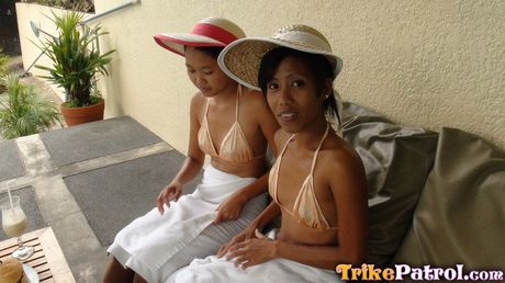 Trike Patrol: Asian teens Jeremay and Mayka share a big dick in a hot outdoor threesome