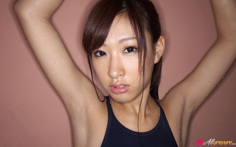 All Gravure: Ayaka Enomoto Asian sexy in bath suit plays and smiles in water