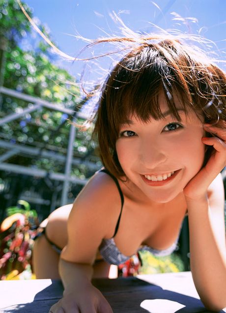 All Gravure: Ayaka Sayama Asian shows nasty behind in blue bath suit outdoor