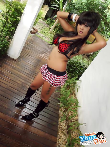 Submit Your Thai: Big tit Thai girlfriend stripping and posing outdoors
