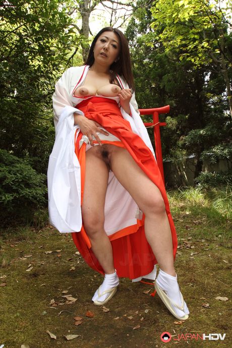 Japan HDV: Brunette kimono babe Ayano Murasaki wants to show her twat outdoors
