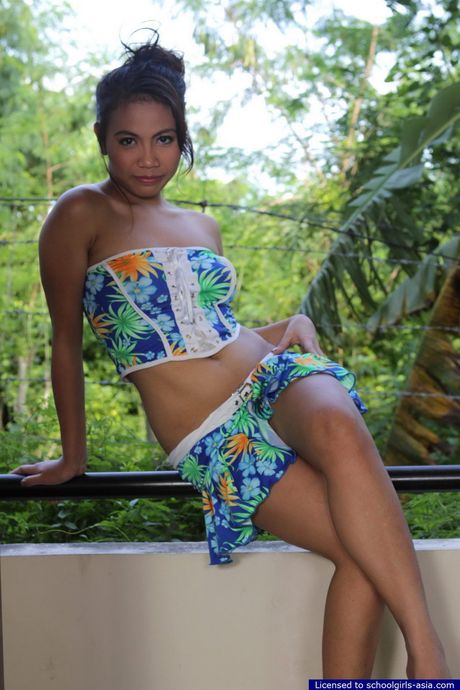 Schoolgirls Asia: Chady flashes her bald pussy on the balcony of her apartment