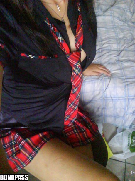 Bonk My Chinese: Chinese babe in sexy short plaid skirt