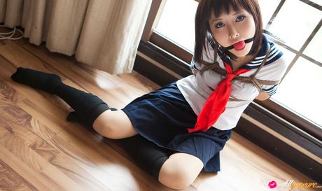 All Gravure: Dimdim Asian in school uniform is tied in ropes and can´t scream