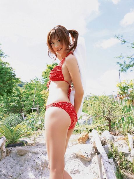 All Gravure: Dreamy cute gravure idol with pig tails in a red skimpy bikini