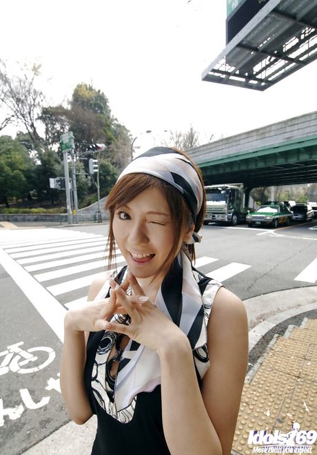 Idols 69: Enchanting japanese babe Yuma Asami in fancy skirt exhibiting big knockers and sexy ass outdoor