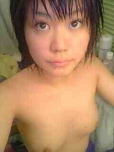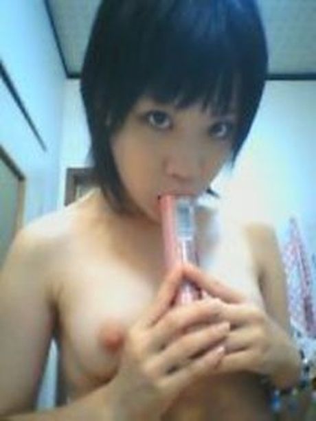 AsianTeenPictureClub: girl with pegs on her tits poses in the mirror