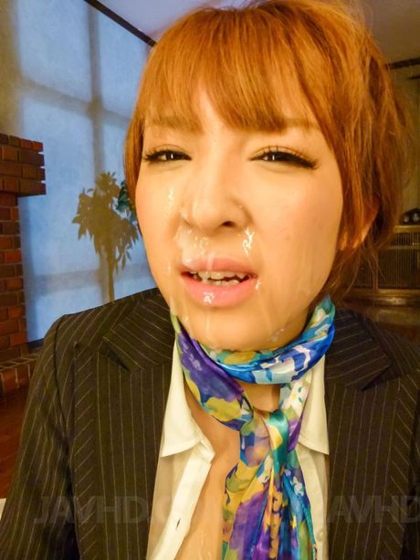 Jav HD: Hikaru Shiina in office suit gets cum on face from sucked tools