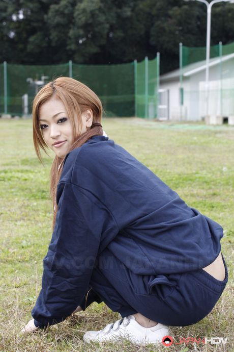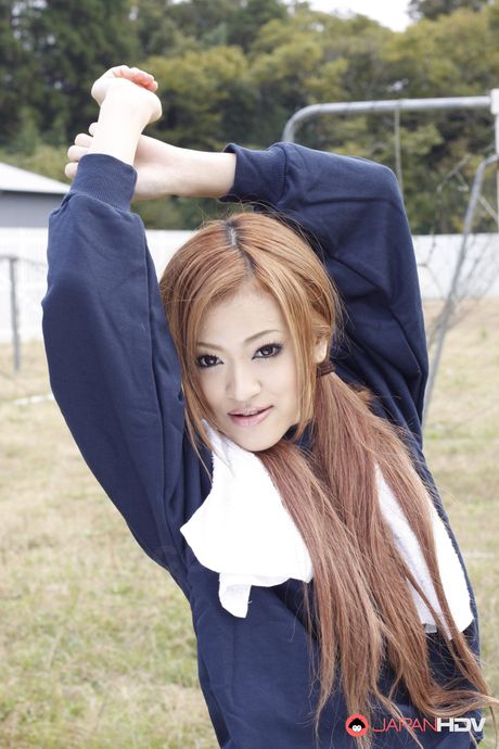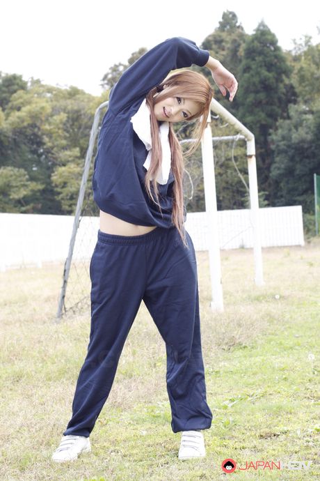 Japan HDV: Hot and sensual babe An Umemiya stretches on football field and poses