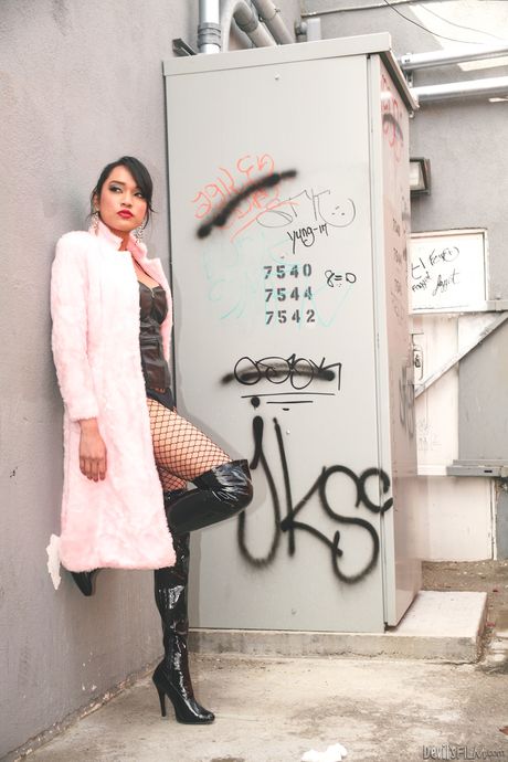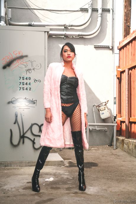 Devils Film: Hot Asian babes Carrie Ann & Jessica Fox in high heels & lingerie