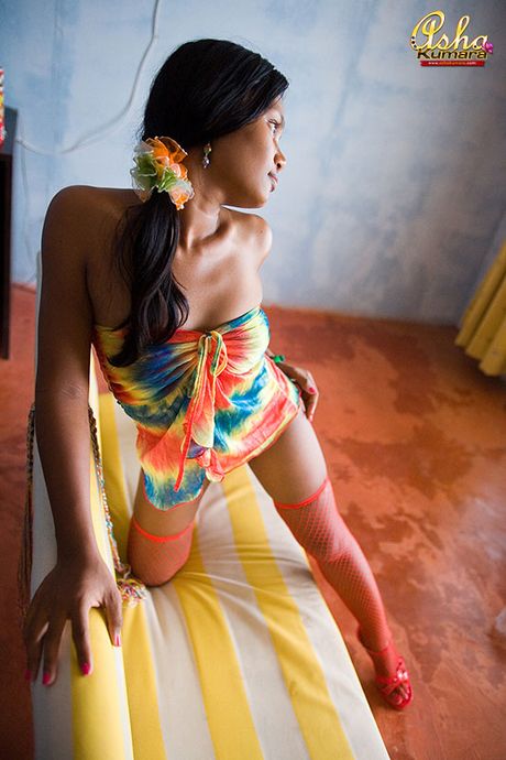 Asha Kumara: India teen Asha lift colorful shirt to expose red thong