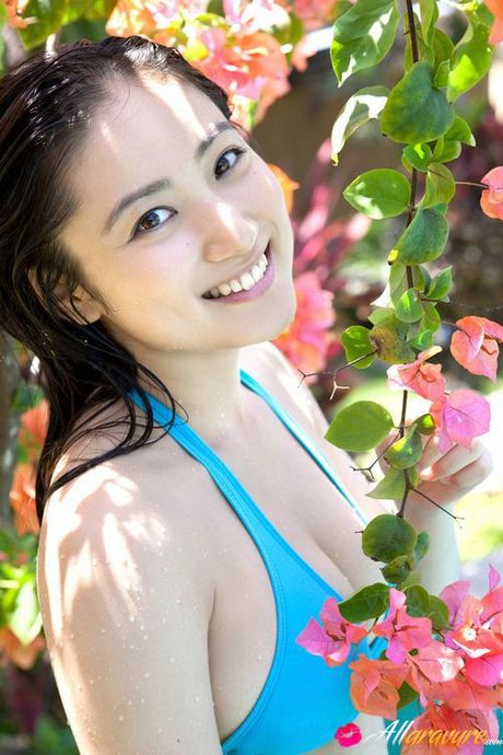 All Gravure: Irie Saaya Asian shows sexy body in blue bath suit in the pool