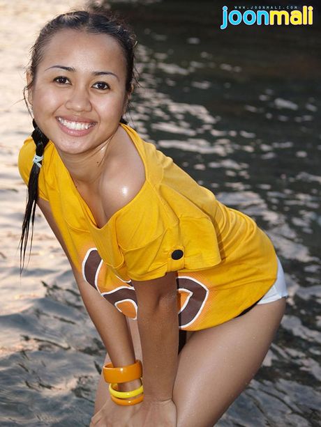 Joon Mali: Joon Mali wets tiny white panties then shows petite boobs