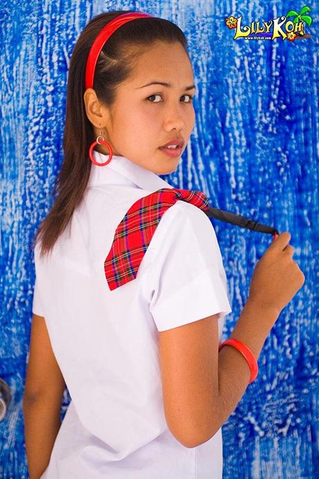 Lily Koh: Lily Koh in sexy Asian schoolgirl uniform strips