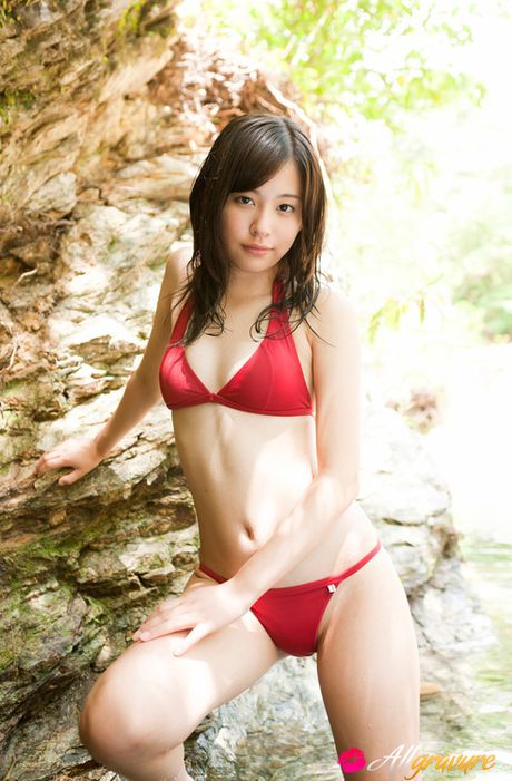 All Gravure: Mikako Horikawa Asian with hot body in red lingerie plays outdoor