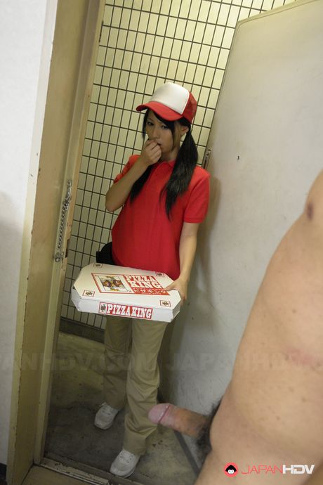 Japan HDV: Miku Oguri strokes cock and has tits touched when delivering pizza.