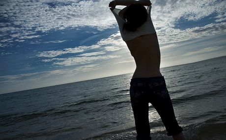 Idols 69: Misako Asian cutie in a denim dress is enjoying the outdoors and posing