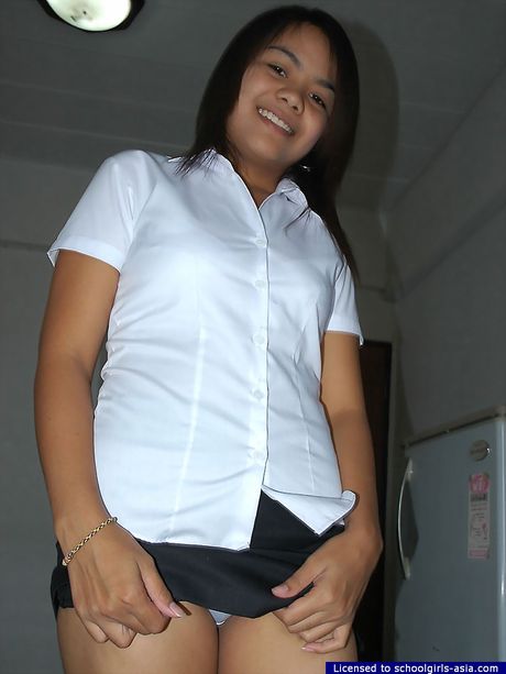 Schoolgirls Asia: Schoolgirl stripping on her bed to flash her hairy muff