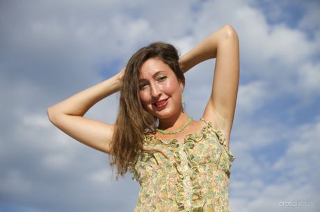 Erotic Beauty: Sexy Asian babe Alana Jaya strips and rubs her pussy on the beach