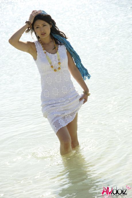 AV Idolz: Sexy Japanese babe Risa strips and shows her tiny tits and pussy on the beach