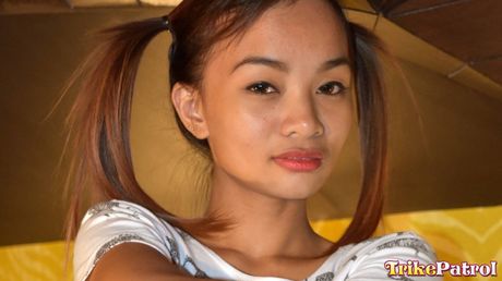 Trike Patrol: Skinny Asian teen Seina strips and shows her tiny tits and ass