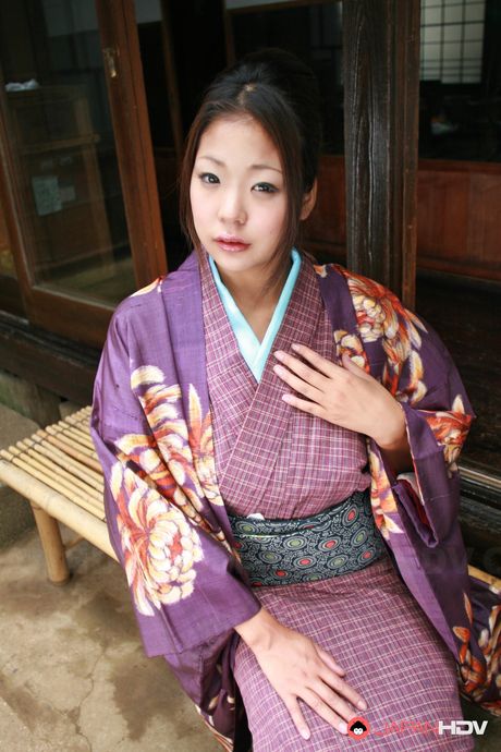 Japan HDV: Sweet brunette in a purple kimono wants to show her fine twat