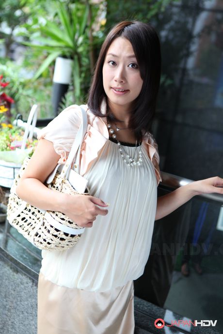 Japan HDV: Sweet dark haired Emiko Koike teases in her white dress on the bed