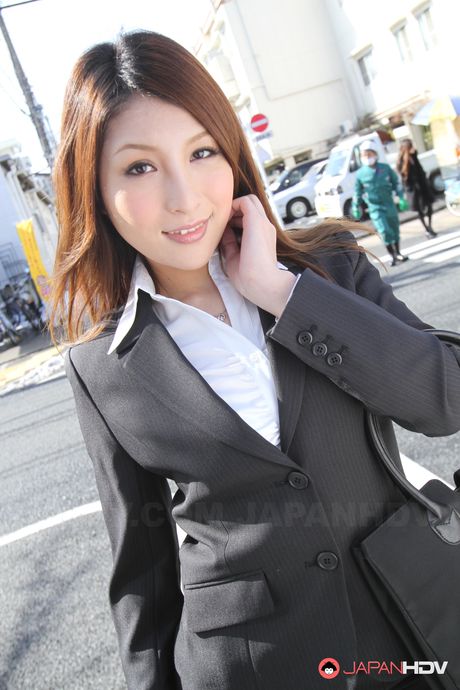 Japan HDV: Sweet office lady in a sexy suit Rara Mizuki posing outdoors with joy