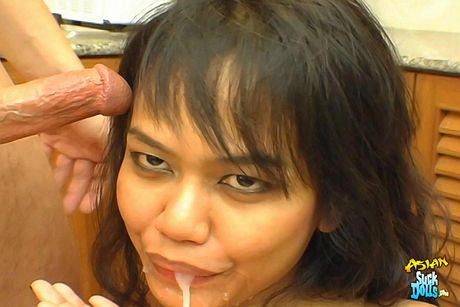 Asian Suck Dolls: Thai bar slut Fern sucks and fucks in the kitchen then gets a blast in the mouth
