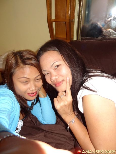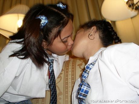 Little Brown Fucking Machines: These two horny college girls French kiss together while being fucked by a horny stud