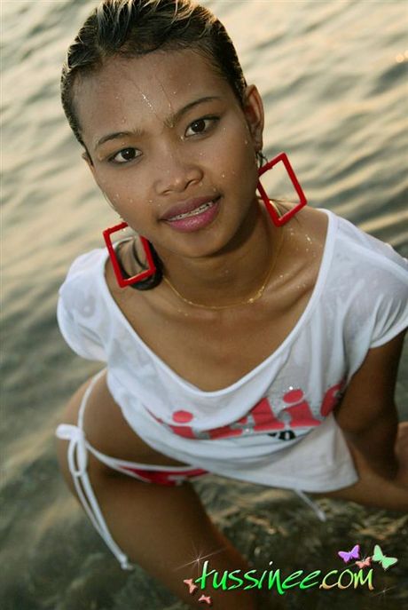Tussinee: Tiny teen Thai girl takes a swim in the Gulf of Thailand
