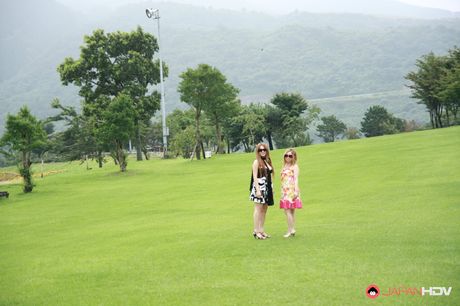 Japan HDV: Two delicious Japanese babes show off their natural tits in a park.