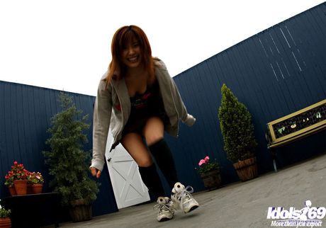 Idols 69: Very attractive japanese hottie Kana in fancy pantyhose shows hairy twat
